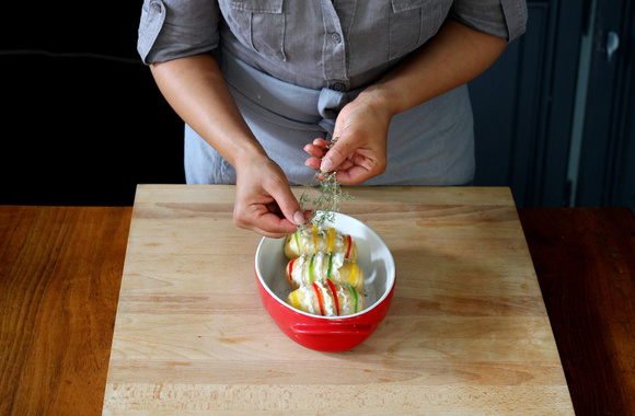 8Parsemez les pommes de terre de thym séché.