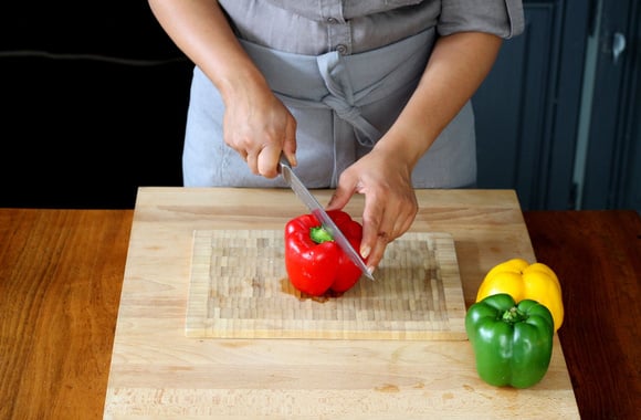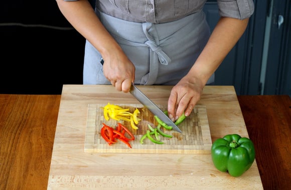 2Coupez les poivrons en lanières.