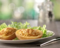 Écraser la chair avec la Moutarde fine et forte Amora, la crème, la ciboulette et l'emmental râpé.