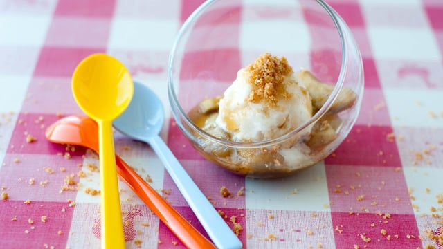 Le sorbet plein fruit Pomme Carte d"Or® apporte une touche de fraîcheur à ce dessert au parfum du Canada, car les pommes sont sautées au sirop d"érable !