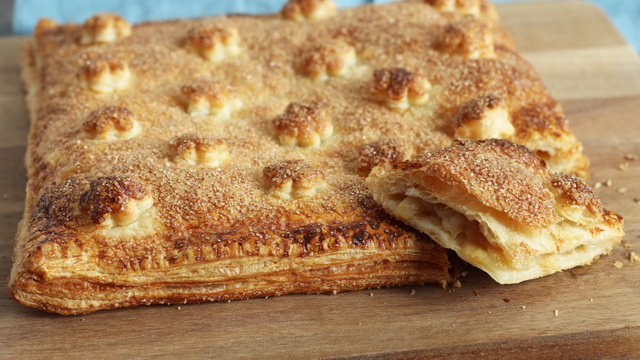 La pompe aux pommes est un dessert qui vient d'Auvergne. Des pommes sont enfermées dans de la pâte feuilletées. Elles deviennent fondantes à la cuisson, c’est divin. Elle est traditionnellement de taille rectangulaire mais libre à vous d'adapter la recette à vos goûts.