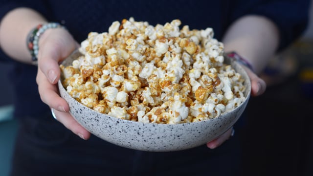 On utilise pour cette recette des grains de maïs crus que l'on trouve très facilement dans les supermarchés ou dans les boutiques bio sous l'appellation maïs pour popcorn. Pour encore plus de gourmandise, vous pouvez faire du caramel à côté et faire revenir votre pop-corn dans la poêle de caramel.