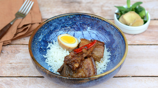 Le porc au caramel ou thịt kho est une recette traditionnelle du Vietnam et aussi l'une des plus emblématique. Le porc est d'abord braisé dans un caramel puis ensuite mijoté afin qu'il soit bien tendre. On ajoute des œufs en fin de cuisson et on sert le plat avec du riz blanc.