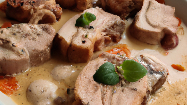 Porc au lait, oignon, lardons et pomme de terre.