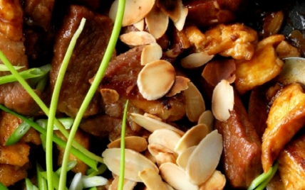 Il n'y a plus qu'à saupoudrer avec la ciboule restante et les amandes effilées, et d'ajouter au goût de chacun de la sauce prune.