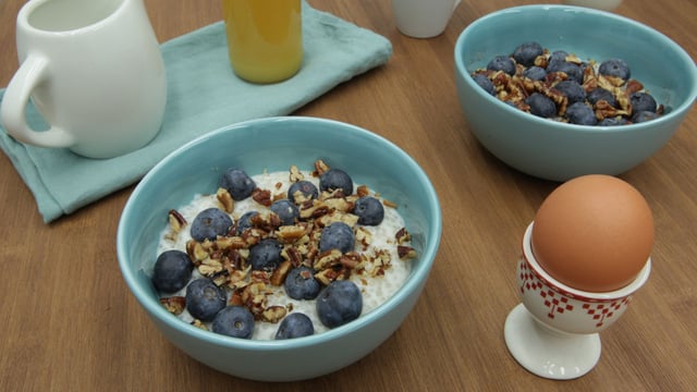 Faites cuire 15 min. en remuant régulièrement. Versez dans des petits ramequins et laissez tiédir 5 min. Concassez les noix de pécan grossièrement. Ajoutez les myrtilles et les noix de pécan dans les ramequins.