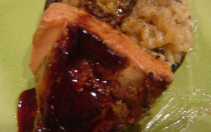 Réchauffer la réduction d'échalote confite. Ajouter éventuellement une petite c.à.c. d'eau si c'est trop épais.