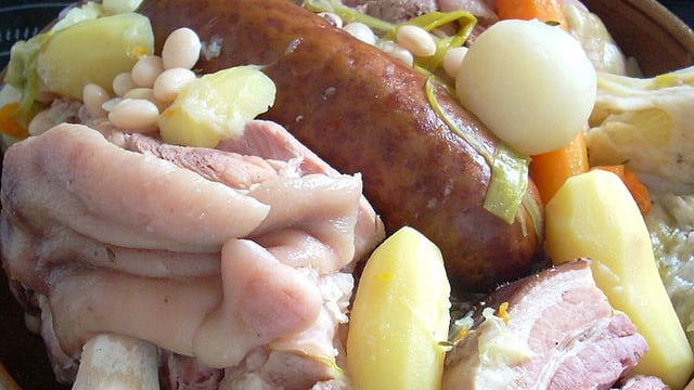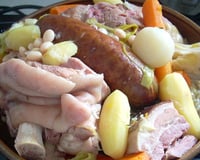 Après une heure de cuisson des viandes, vérifiez l'assaisonnement en goûtant le bouillon, rectifiez si nécessaire en sel et poivre. Ajoutez dans la marmite les carottes, les navets, le chou, les poireaux, les haricots blancs égouttés et laissez cuire encore 30 minutes. Ajoutez alors les pommes de terre et la saucisse de Morteau après l'avoir percée de quelques trous avec une aiguille fine. Continuez la cuisson encore 30 minutes.