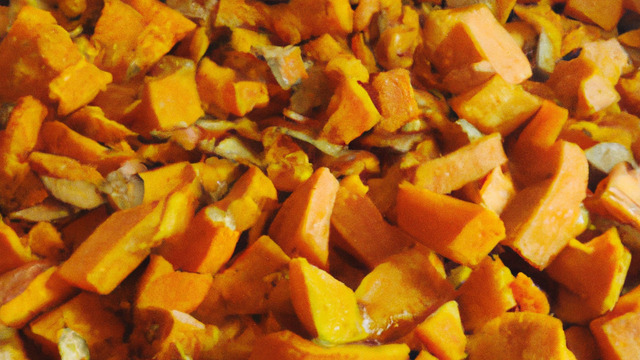 - Coupez le potiron en 4, retirez l'écorce et coupez le en morceaux puis en cubes.
