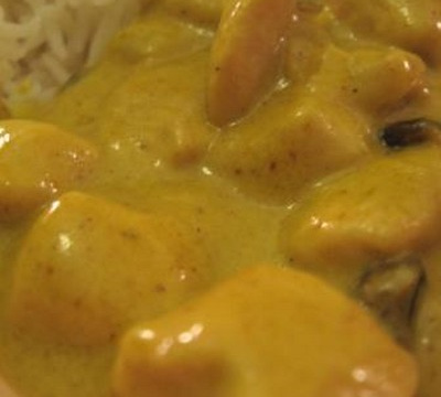 Rajoutez la crème, les raisins secs et le curry. Salez.