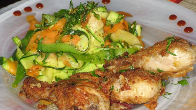 Servir les pilons accompagnés des tagliatelles de légumes.