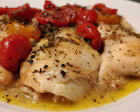 Faites cuire dans une sauteuse avec de l'huile d'olive. Ajoutez l'ail et les oignons émincés. Mettre les tomates dans de l'eau bouillantes durant 1 minutes, laissez les refroidir puis pelez les. Coupez les en quartiers puis ajoutez les au poulet qui cuit. Mettre 1 cuillère a soupe de sel, un peu de poivre, une pincée de sucre ( pour enlever l'acidité des tomates ) puis ajoutez généreusement ( selon votre gout ) les herbes de provence.