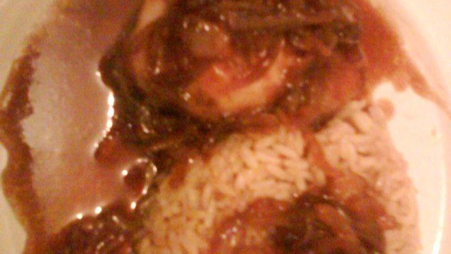 Lorsque les cuisses sont cuites , ajouter la marinade, attention remuez et arrosez la viande, car cela caramélise vite. Servez le plat accompagné d'une timbale de riz.