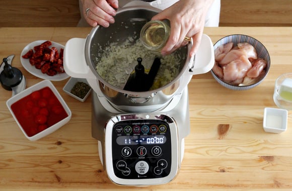 Lancez le programme Mijoté P1, à 130°C, pendant 5 minutes.