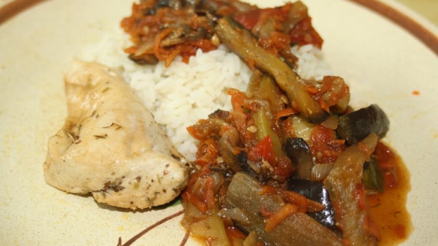 Je le sers avec du riz et une poêlé de légumes du soleil (aubergines, courgettes,tomates...)