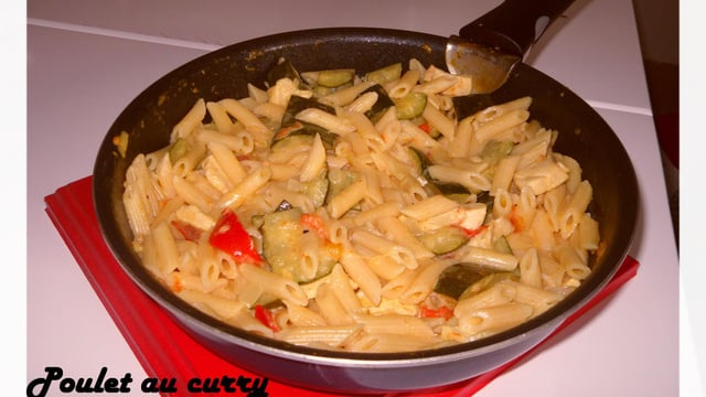 Faire cuire les courgettes dans une casserole d'eau jusqu'à ce qu'elles soient tendres (environ 20 minutes). Faire revenir le poulet dans une poêle avec une cuillère à café d'huile. Dès qu'il a blanchi, rajouter dans la poêle la tomate et mettre du curry à votre goût (en moyenne 2-3 cuillères à café).