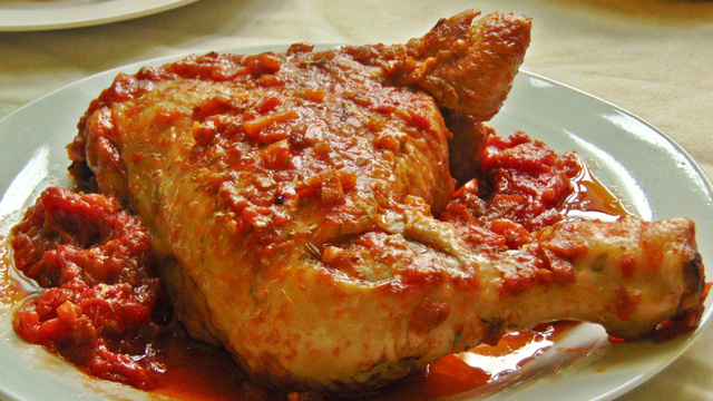 Une fois le poulet cuit, parsemer de persil frais haché et servir bien chaud. Vous pouvez accompagner ce plat de pommes de terre au four, comme je le fais régulièrement.