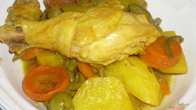 Porter doucement à ébullition,ajouter les olives rincées et égouttées assaisonner d'un peu de sel et de piment et cuire 1h à couvert à feu doux.