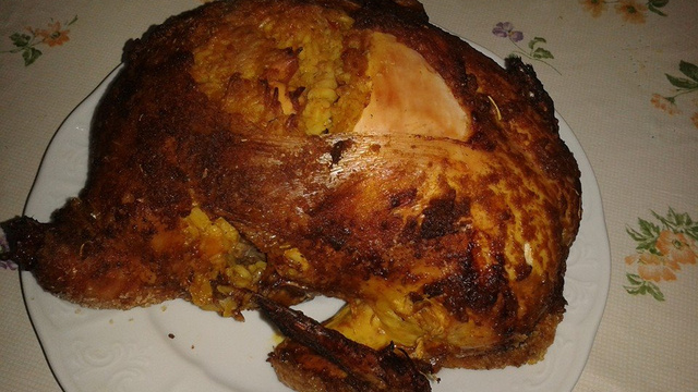 Dans un petit bol, mettre de l'huile, avec du sel, du poivre, du curcuma, du poivron moulu, du thym et du romarin. Assaisonner à l'intérieur comme à l'extérieur.