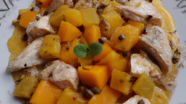 Eplucher l'échalote. Eplucher la mangue et débiter la moitié du fruit en morceaux. Mettre le reste de la mangue dans un mixer, ajouter le vinaigre, la coriandre, 2 cuillères à soupe d'eau, l'échalote puis mixer pour obtenir un coulis. Découper le poulet en morceaux.