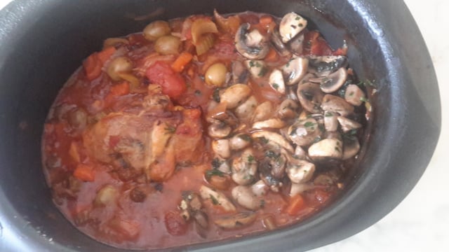 De nos jours, la recette s'est simplifiée pour devenir un poulet sauté puis mijoté dans une sauce à la tomate et au vin blanc.