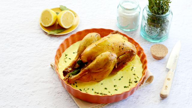 La recette d'aujourd'hui est très simple en plus d'être goûteuse. Le poulet sera parfaitement aromatisé avec des herbes et il rôtira à la fin de cuisson avec une sauce à base de crème, de zeste de citron et de curcuma.