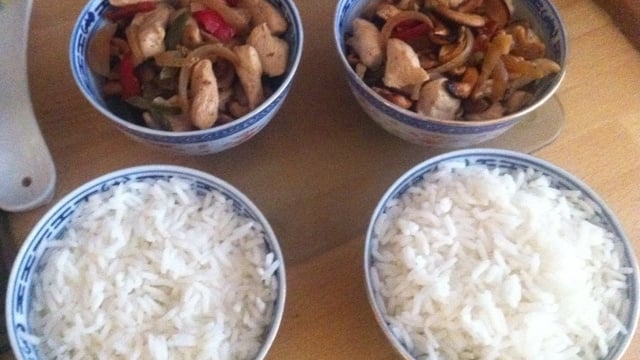 Lorsque la sauce est assez réduite à votre goût, remettez le poulet puis les noix de cajous, juste le temps de les réchauffer et servez sans attendre.