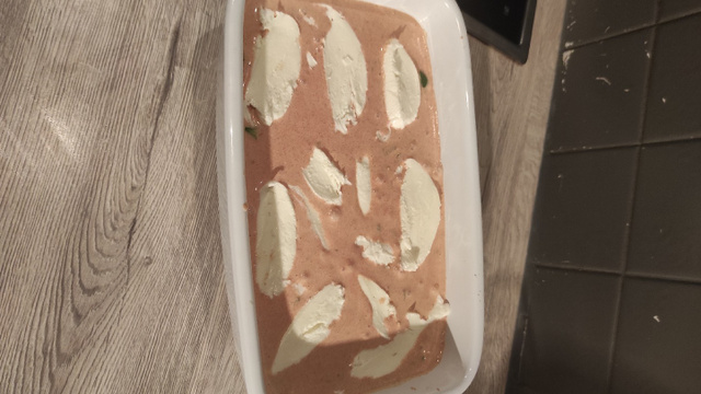 Découper la mozzarella en fines lamelles et disposer par dessus.