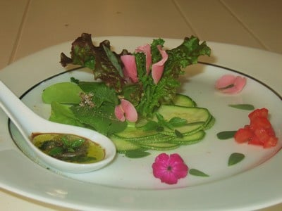 Jeunes feuilles de salades du jardin et son huile basilic pourpier
