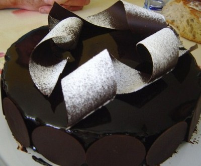 Un gâteau très léger avec une mousse au chocolat amande légère et un glaçage au chocolat d'une superbe brillance.