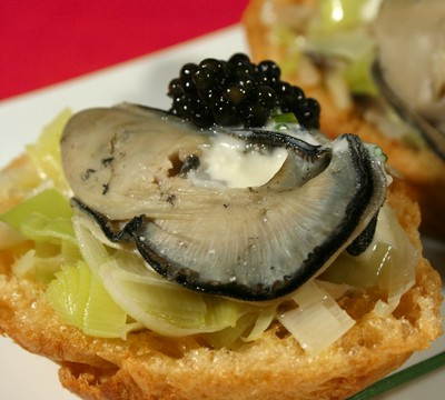 Deux-Mers" avec la ciboulette. Dresser les profiteroles, napper, surmonter de caviar d'Aquitaine.