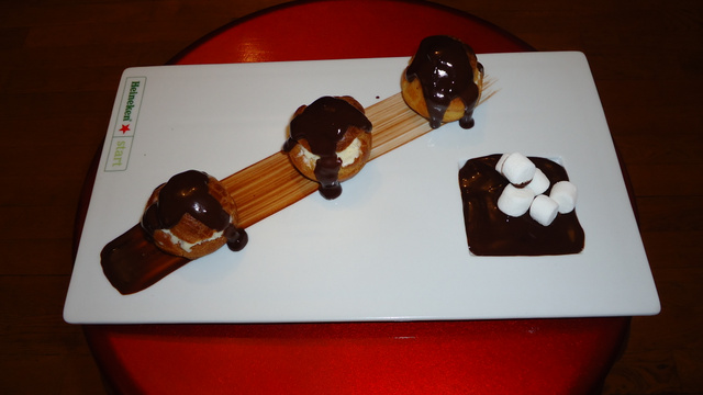 Des choux, de la glace vanille maison et une sauce chocolat chaud
