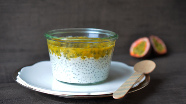 Pour apporter un peu de légèreté après les fêtes tout en se faisant plaisir, voici une recette de pudding de chia, sans lactose, à la fois doux et croquant en bouche. Riche en protéines végétales, en oméga-3, en fibres et en vitamine E, les graines de chia sont également peu caloriques. Ici, l"acidité du maracudja se marie à merveille avec la douceur du lait de coco... mais vous pouvez remplacer ce dernier par le lait végétal de votre choix (amande, riz, soja... ).