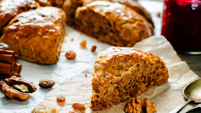 Faites chauffer le four à 180°C. Faites tremper les raisins dans un bol d'eau chaude.