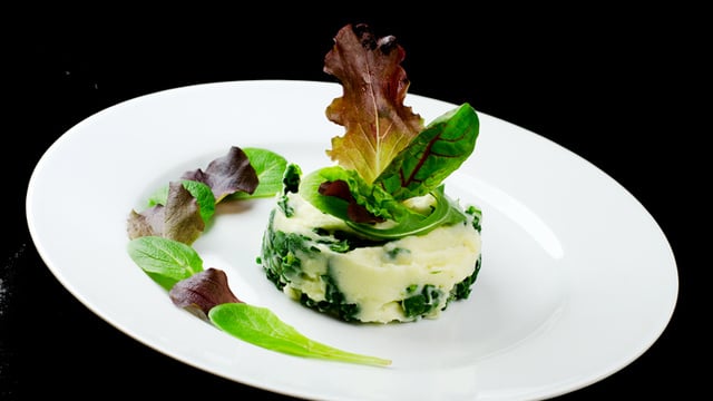 Servir à côté de la viande (ou d'un filet de poisson) à l'aide d'un emporte-pièce en ajoutant quelques feuilles de salade pour donner de la hauteur au plat.