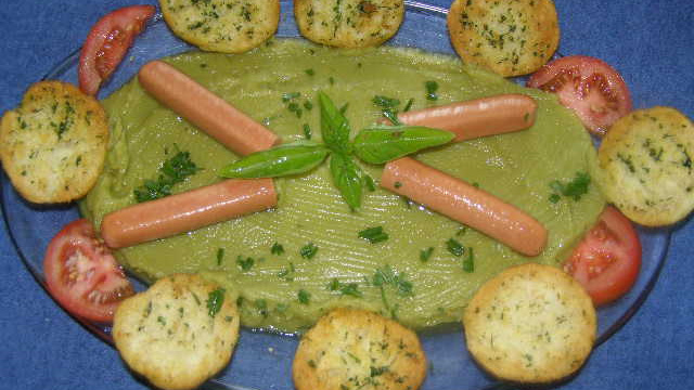 Égoutter les pois cassés, les mixer en purée, puis les passer au tamis.