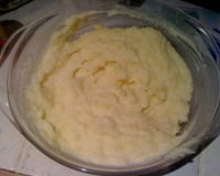 Réduire les pommes de terre à la fourchettes en laissant quelques morceaux.