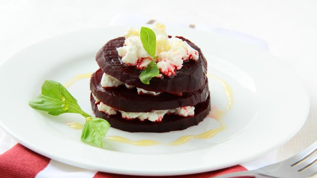 Une façon originale de savourer la betterave. Une association parfaite entre le fromage de chèvre et cette racine pas toujours appréciée.
