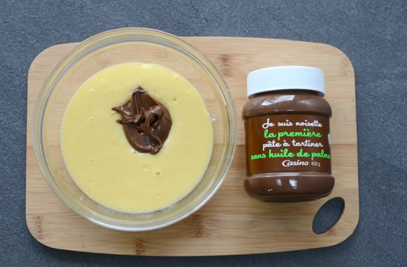 5Divisez la pâte en deux, ajoutez la pâte à tartiner dans l'une des deux pâte et mélangez.