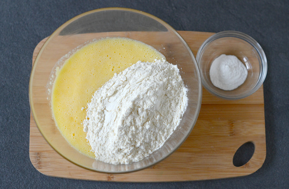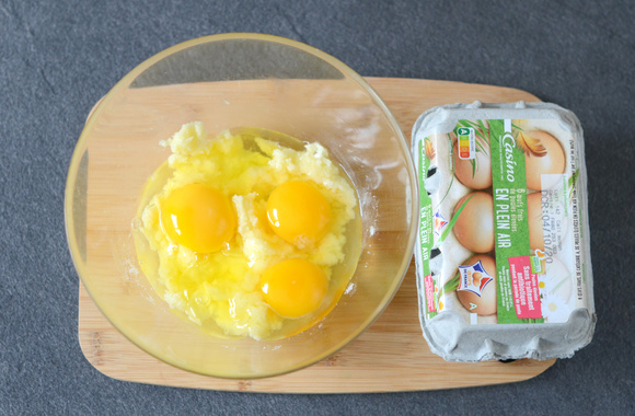 2Ajoutez les œufs et fouettez.
