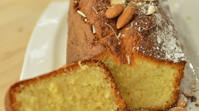 Mélangez la levure à la farine. Ajoutez le mélange de farine en 1 fois au mélange précédent. Mélangez bien. Ajoutez le beurre fondu, mélangez de nouveau. Ajoutez la poudre d'amandes et mélangez une dernière fois. Versez dans un moule à cake beurré et fariné.