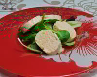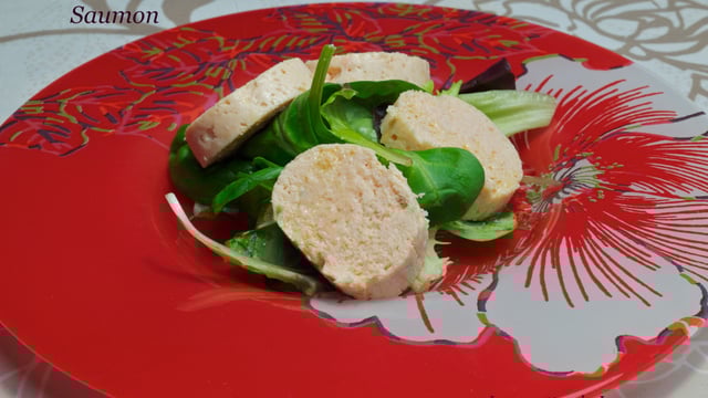 Prenez du papier film étirable, coupez un grand rectangle, sur la partie inférieure déposez de la farce sur la longueur, roulez, pincez les extrémités et roulez en serrant, posez ces boudins dans le cuit- vapeur et laissez cuire 10 minutes.A déguster avec une salade.