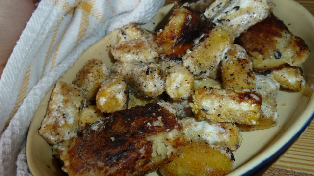 Si vous le souhaitez, vous pouvez ajouter de la crème fraîche à vos quenelles panées mais ne les laissez pas trop longtemps sur le feu où elles risquent de brûler. - 6Un fois la cuisson de vos rösti finie, poêlez-les sur chaque face dans une poêle bien chaude avec une noix de beurre. Dégustez le tout !