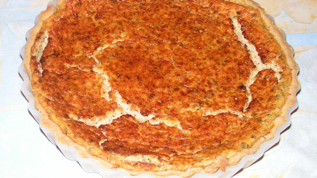 Verser la préparation sur la pâte brisée et la faire cuire 45 mn au four préchauffé à 200°.
