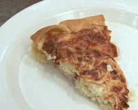 Étalez votre pâte dans une tourtière et déposez les lardons. Puis versez l'appareil.