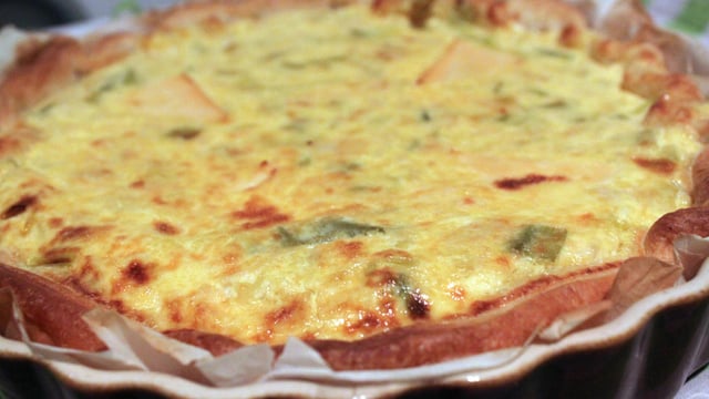 Versez la préparation sur la pâte, parsemez de fromage râpé puis faîtes cuire 40 mn à 200°C.