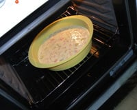 Versez dans un plat à quiche préalablement chemisé (graissez avec un morceau de beurre le plat et y déposer une fine couche de farine par dessus) si nécessaire suivant votre plat.