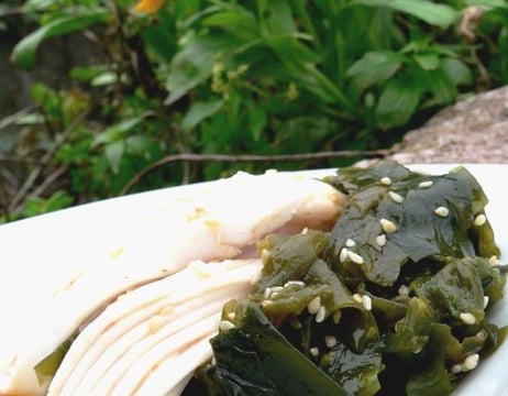 Chauffez de l'eau dans une casserole et ébouillantez les algues pendant 10 secondes. Refroidissez les sous de l'eau froide.