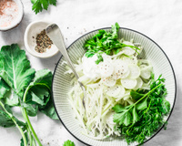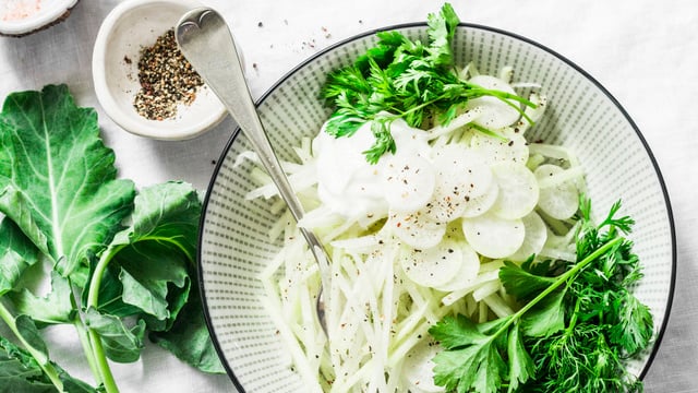 - 1Éplucher et râper le chou rave.Éplucher les pommes et les tailler en fines lamelles.