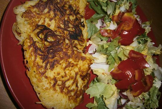 - Râper les pommes de terre crues en lamelles ni trop fines, ni trop épaisses. Mélangez aux oeufs et mettre la mixture ainsi obtenue dans une poêle copieusement beurrée comme vous le feriez d'une crêpe ou d'une omelette.Vous pouvez ajouter des oignons cuits, du persil haché .